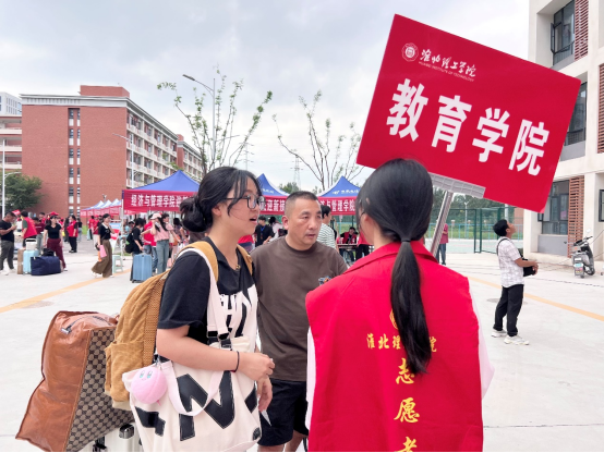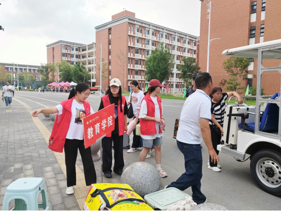 在精心筹备后,迎新工作全面就绪。学校各级领导,学院院长王家云、副书记孟向红以及学院全体辅导员老师携85名学生志愿者,在新生报到的现场全程参与了迎新工作,他们热情地迎接新生的到来,并与新生及其家长进行了友好的互动交流。志愿者们分工合作,有序地开展了迎接新生、安排住宿报到、审核报到资格、校园卡领取、确认缴费等各项工作。此外,教育学院还设立了新生报到服务站点,为新生们提供路线指引、信息查询、物品搬运等服务。