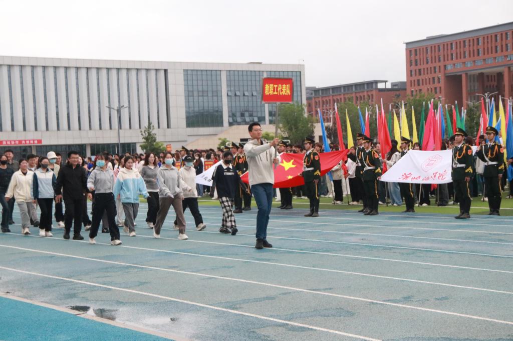 随后,校旗队、彩旗队、裁判员队以及学校各参赛队伍依次有序入场。各代表队精神抖擞、意气风发,他们迈着整齐的步伐,喊着响亮的口号,展现出淮北理工学院师生积极向上、奋勇拼搏的精神风貌。