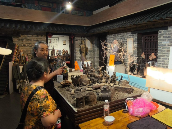 最后,孟向红一行来到“指尖泥塑传非遗,红色基因铸匠心”实践团。队员们正在与当地泥塑艺人交流学习,探索将红色基因融入泥塑创作的新途径。孟副书记对队员们将非遗技艺与红色文化相结合的创新思路表示高度认可。她赞叹,这种融合不仅能够传承非遗技艺,还能让红色精神以更直观、更生动的方式呈现出来,具有重要的现实意义。她鼓励队员们大胆实践,不断探索,创作出更多具有特色的泥塑作品。许海涛老师和高伟老师则从艺术创作的角度,为队员们提供了许多宝贵的建议。