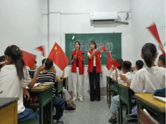 与此同时,宣讲队还组织留守家园的儿童开展特色红色教育活动,带领孩子们绘制关于淮海战役的动漫英雄形象。孩子们充分发挥想象力,将革命先辈们的英勇无畏化作一幅幅色彩斑斓、充满童趣的画作,用稚嫩的笔触表达对英雄的崇敬。随后的红歌学唱环节,孩子们用清澈嘹亮的歌声唱响《歌唱祖国》《没有共产党就没有新中国》等经典曲目,激昂的旋律回荡在文昌宫内外,红色的种子在歌声中悄然播撒进孩子们的心田。