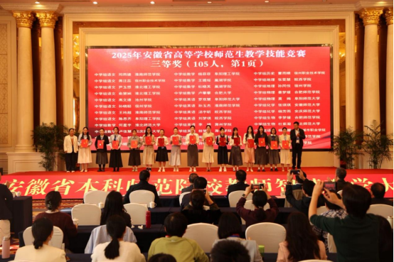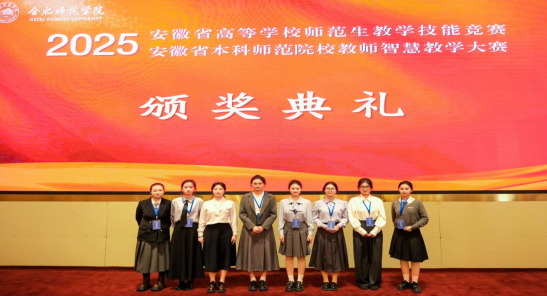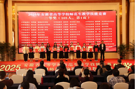 11月2日下午,由安徽省教育厅主办、合肥师范学院承办、安徽省高等院校教师教育合作委员会协办的“2025年安徽省高等学校师范生教学技能大赛”,在合肥师范学院滨湖校区圆满落幕。自7月14日启动筹备至赛事收官,我院历经111天的层层遴选与精心打磨,推荐13个学生(团队)代表学校出征省赛,最终12个参赛主体成功获奖。其中,一等奖2项、二等奖3项、三等奖6项、优胜奖1项。