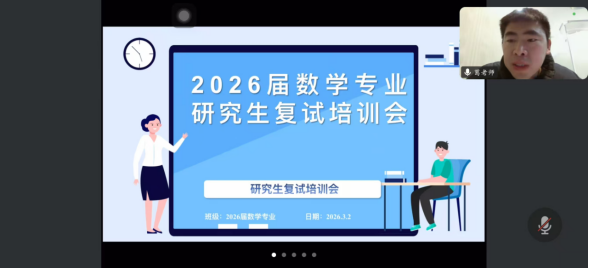 在线下指导方面,3月13日下午15:00,学院在一站式学生社区举办专场指导活动,邀请淮北师范大学数学专业在读研究生何明涛进行现场交流。备考同学们与学长面对面互动,提出自己在复试准备过程中遇到的问题,获得精准答疑和针对性指导。