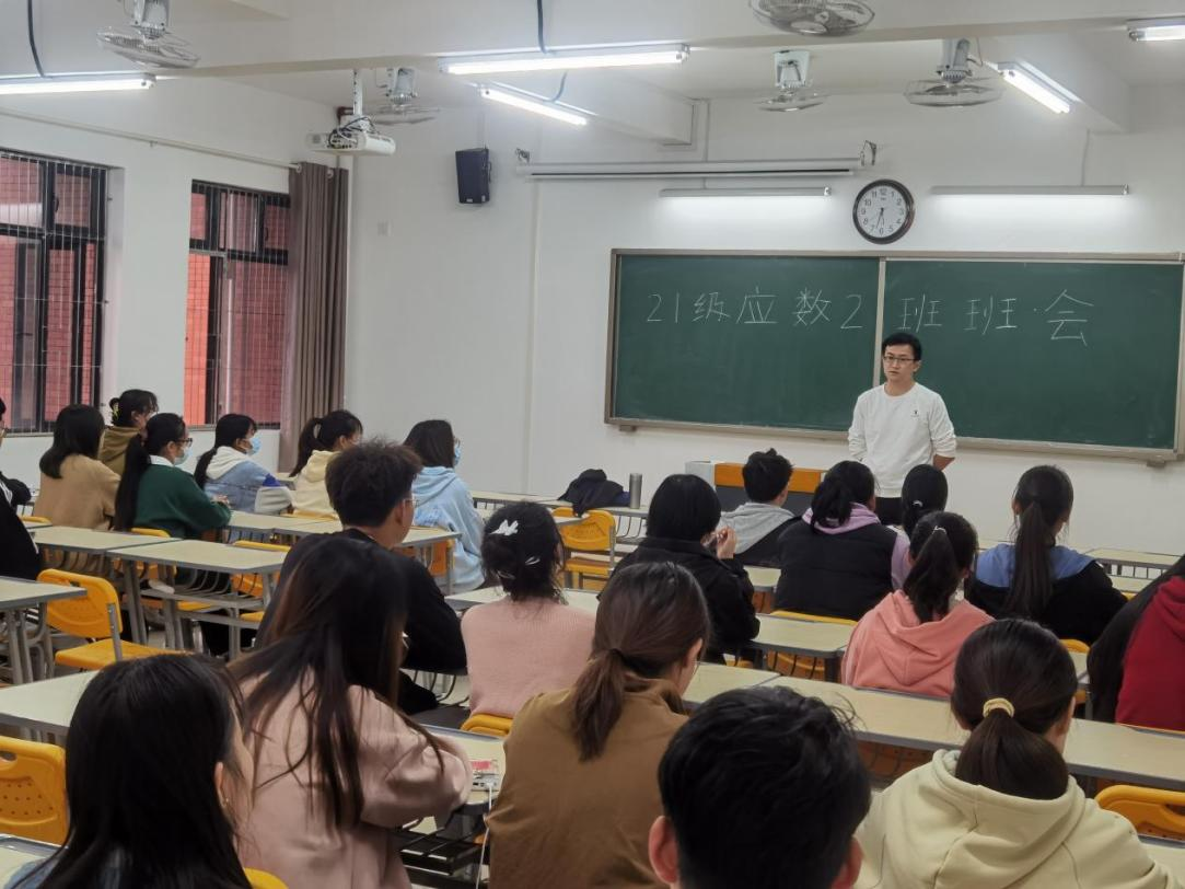 为进一步加强班级管理和学风建设,营造优良学风、团结奋进的班级氛围。我校教育学院2021级数学与应用数学(2)班于2022年10月13日在二教309教室召开新学期主题班会,由班主任檀雷雷老师主持,应数2班全体成员参加。