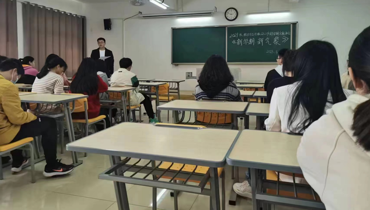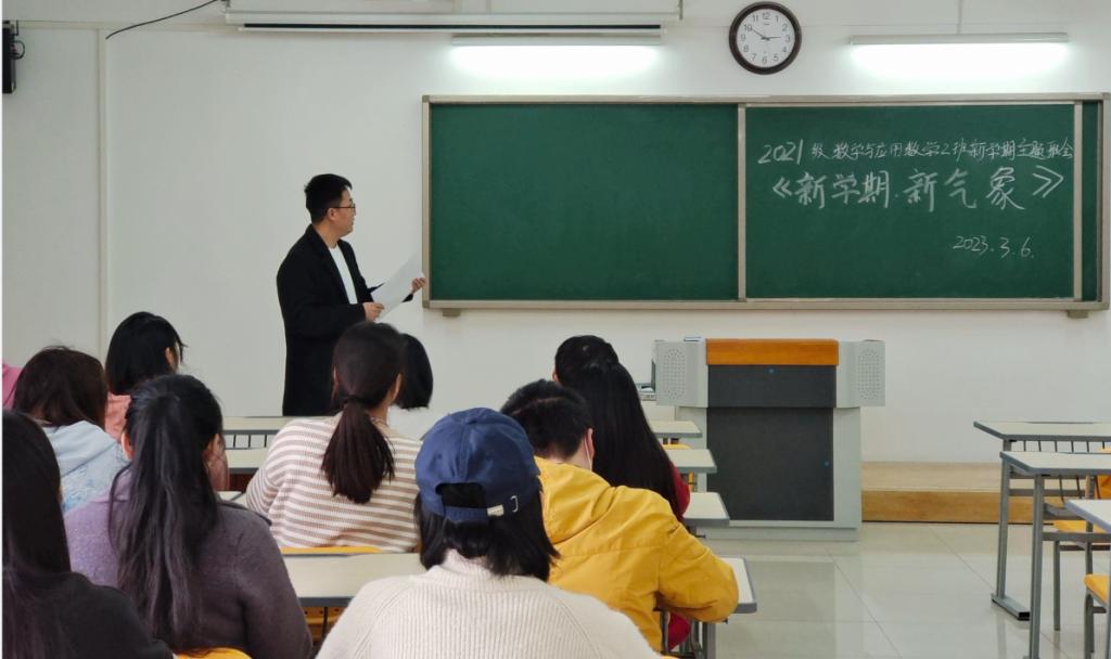 新学期如期而至,为了使同学们在新学期有一个良好的开端,确立新学期的目标和明确对未来的规划,我校教育学院2021级数学与应用数学(2)班于2023年3月6日在二教322教室召开“新学期新气象”的主题班会,班主任檀雷雷老师和2班全体学生参加会议。