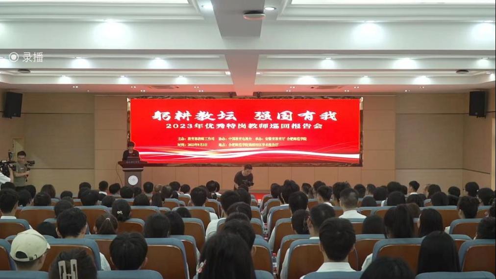 9月3日,在第39个教师节来临之际,由教育部组织的2023年优秀特岗教师巡回报告团到安徽省巡回报告。学前教育教研室组织全体教师收看巡回报告会直播。5位来自中西部乡村学校的教师分享他们的从教生涯、他们与乡村孩子共同的梦想与成长。质朴而充满深情的讲述中,教师的平凡与伟大让人动容,线上参与报告会的不少老师热泪盈眶。
