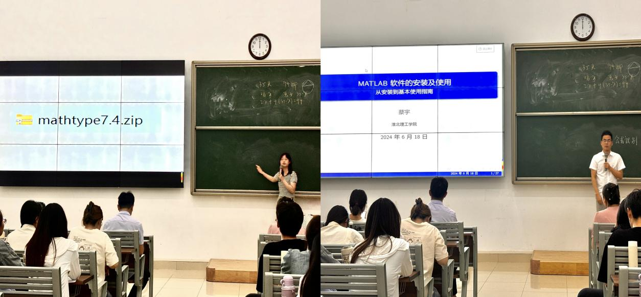 接下来,檀雷雷、杨柳、沈慈慈和蔡宇四位老师对数学建模过程中需用到的软件进行了介绍。檀老师和杨老师分别介绍了SPSS软件和几何画板软件的安装及使用,强调了软件学习的必要性与重要性。沈老师和蔡老师分别阐述了MATHTYPE编辑器和MATLAB软件的安装及使用,嘱咐参赛队伍要利用假期时间通过bilibili视频平台、知乎、MOOC等相关网站进行软件学习。