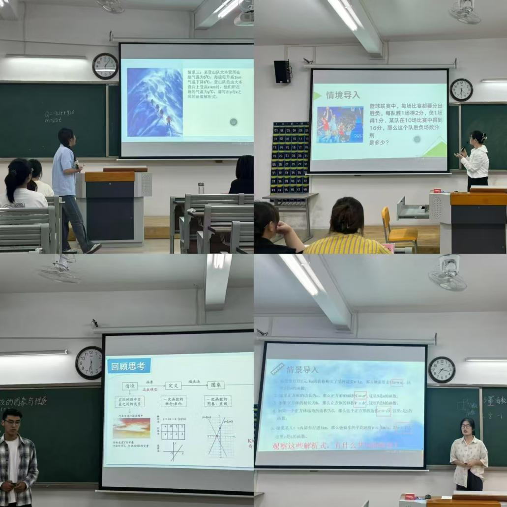 为激发师范生学习热情和创新能力,提高师范生综合素质和实际教学能力,9月9日晚18点,教育学院数学与应用数学教研室在第二教学楼举办第二届师范生教学技能大赛初赛。本次比赛由教研室12位青年教师出席并担任评委,共分为4小组同时进行,每组3位评委,其中小学组1组,中学组3组,教育学院2022级、2023级数学与应用数学专业学生参与比赛。