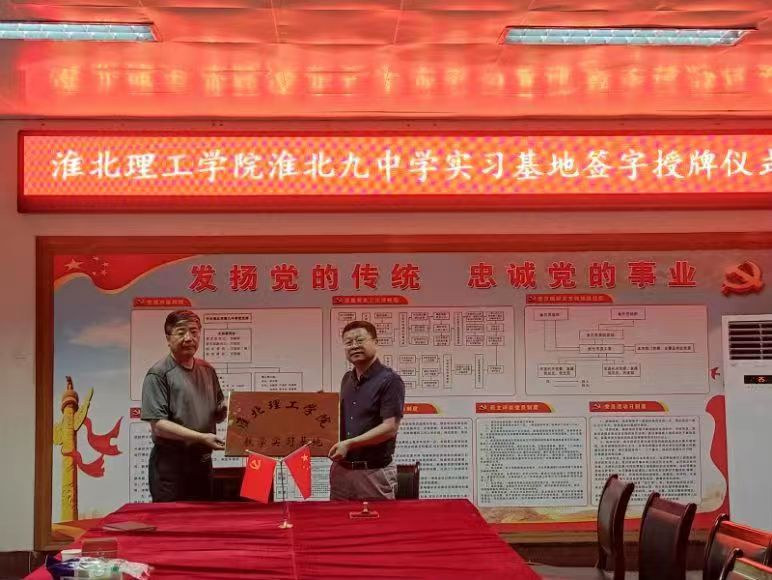 淮北理工学院与淮北市第九中学、淮北市朱庄初级中学、淮北市朔里实验初级中学开展实习基地签字授牌活动
