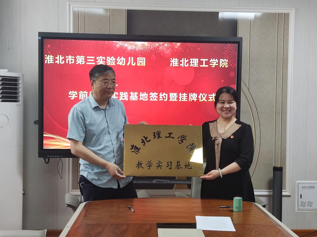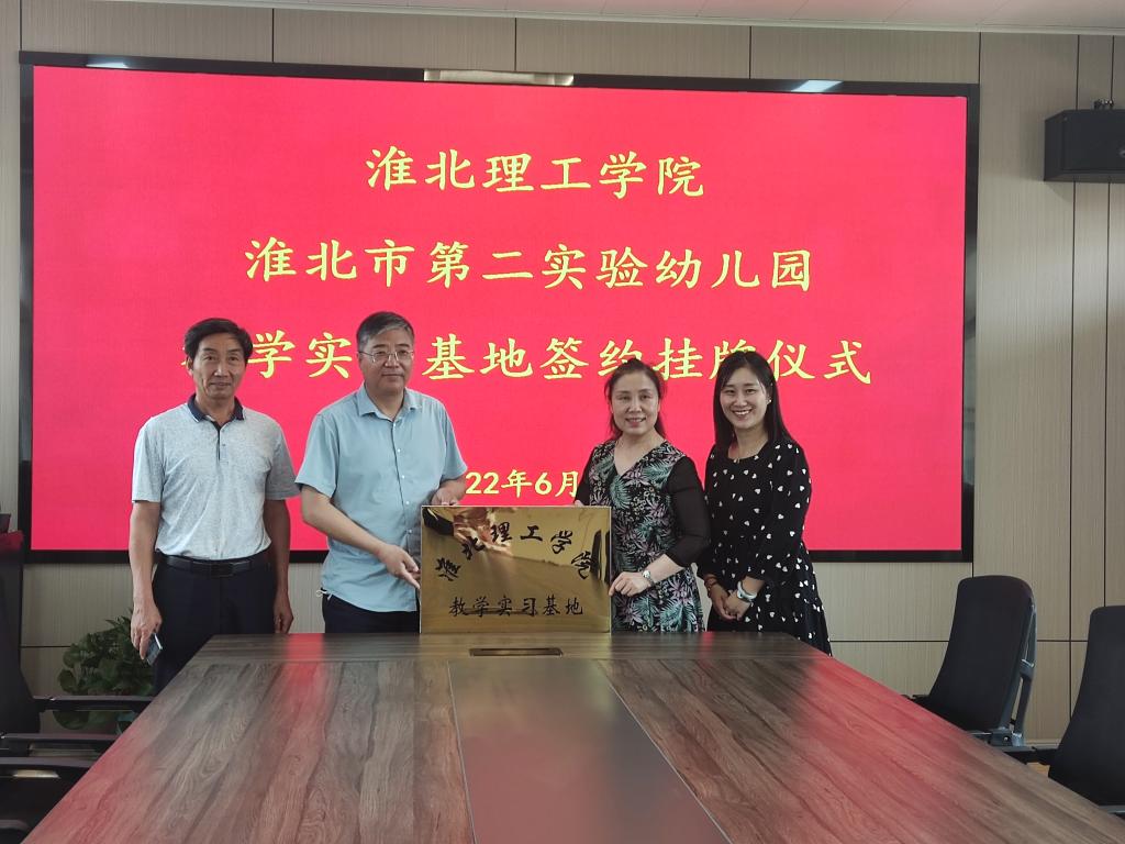 为加强基础教育师资队伍建设,提高淮北理工学院学前教育本科师范生培养质量同时助力淮北地区幼儿园更好地发展,2022年6月9日上午,淮北理工学院牵手淮北市第二实验幼儿园、淮北市第三实验幼儿园、淮北市相山区凤凰幼儿园共建教育实践基地签约暨揭牌仪式在各个幼儿园举行。