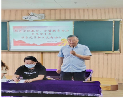 教育学院学前教育、数学与应用数学学生支部于2022年6月9日在艺术楼301召开预备党员转正大会,学院党委书记王家云,教工支部书记马香玉、教育学院辅导员,预备党员同志的培养考察人以及支部全体党员同志参加了会议。
