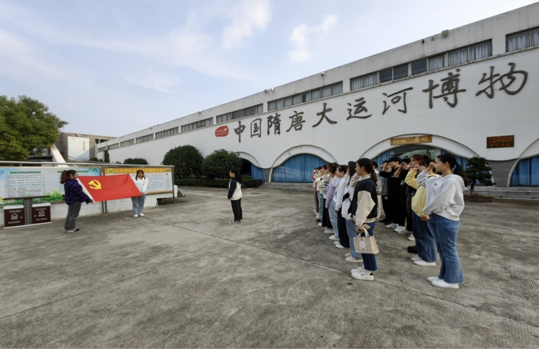 10月11日下午,教育学院汉语言文学专业学生第二党支部组织全体党员前往隋唐大运河博物馆开展“新时代高校党员教育培训”实践活动。活动包括重温入党誓词、聆听讲解和参观学习等,支部书记张颖颖同志主持了本次活动。
