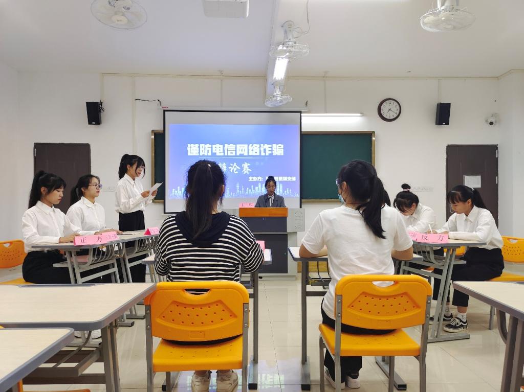 9月下旬,教育学院组织各班级开展辩题为“预防诈骗和打击诈骗哪个更重要”反诈主题辩论赛。本次辩论赛以班级团支部为单位组队参赛,辩论赛以开篇立论、攻辩、自由辩论、总结陈词等四个环节进行,以真实的案例向同学们普及电信网络诈骗的惯用手法。学院共收到20余份论辩材料,经过角逐,21级汉语言文学4班、21级数学与应用数学2班荣获一等奖;21级汉语言文学1班、22级汉语言文学2班荣获二等奖;21级汉语言文学6班、22级汉语言文学9班荣获三等奖。辩以明理,论以求真,辩论赛是一个良好的沟通平台,班级团结友爱,积极向上的学习氛围、辩手们表现出的个性风采和团队魅力,超越了辩论本身。通过有趣的辩论赛,有效遏制了电信诈骗犯罪在校园蔓延的态势。