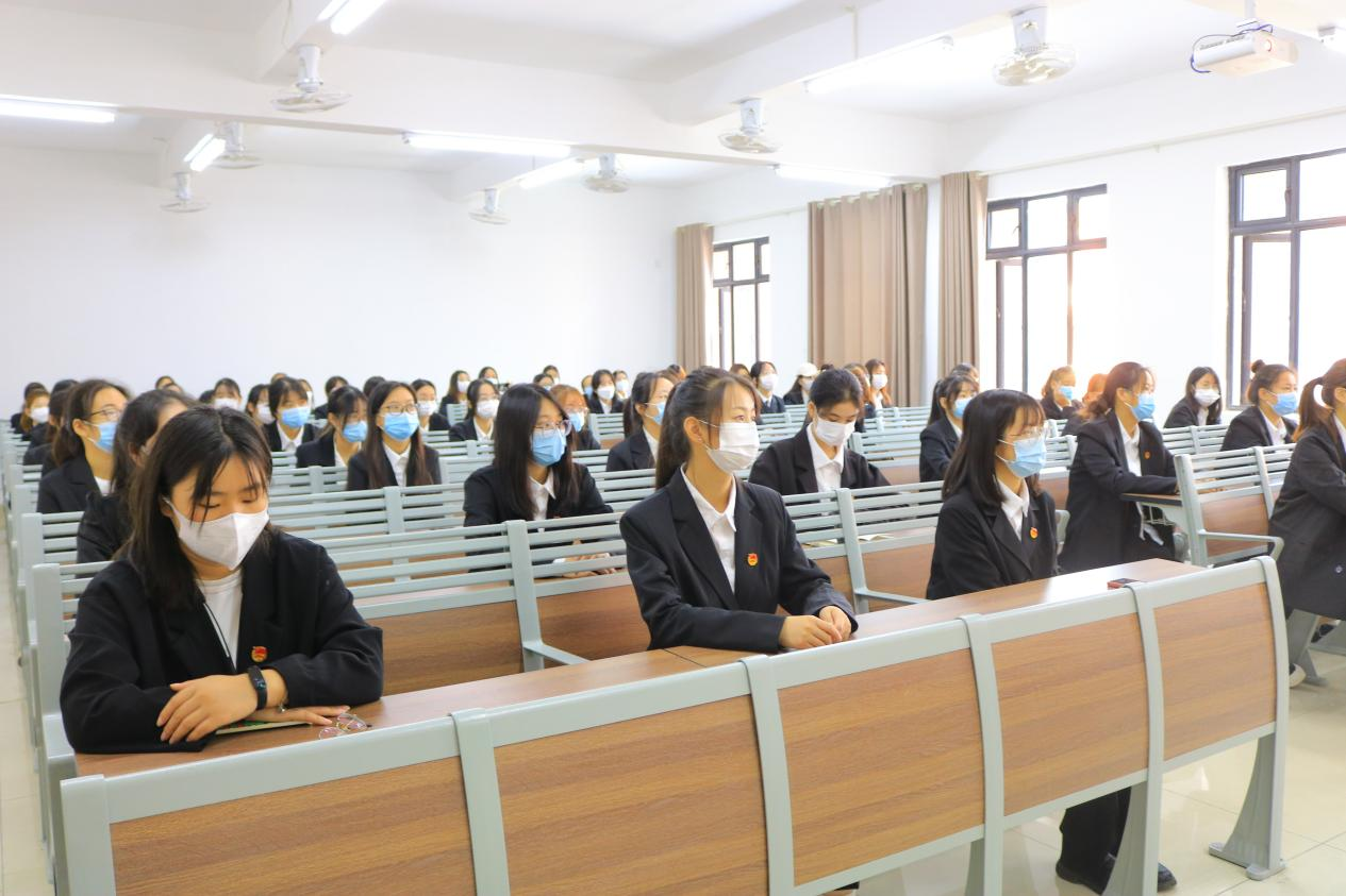 10月16日上午,学院组织学生党员、学生代表分别在第二教学楼412教室、413教室、414教室、415教室集中观看党的二十大开幕会盛况。参加活动的学生党员、学生代表身着正装、佩戴党员徽章、团徽和口罩,全神贯注、认真聆听大会内容。学生代表听完报告后激动地说:习近平总书记对广大青年的殷殷嘱托使我们感受到自己所肩负的使命之重大、号召之强烈。作为新时代青年,我们应当将个人梦想与实现民族伟大复兴的中国梦相结合,以昂扬的姿态在青春的赛道上奋力奔跑。