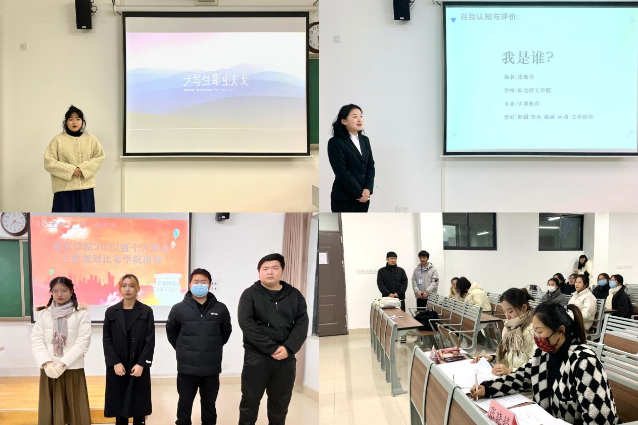 为落实立德树人根本任务,发挥“以赛促学、以赛促教”的积极作用,进一步深化大学生职业生涯规划和创新创业教育,提升大学生职业生涯规划能力,为未来职业发展奠定基础。教育学院自10月中旬以来在全体2022级专升本学生中开展了“职业生涯规划大赛”活动,活动得到了同学们的热情支持和广泛参与,参赛项目分职业规划类和创新创意类两类,经班级初赛后,最终共28个项目进入本次院级决赛。决赛于12月2日晚在1号教学楼413、414、415、416教室分组举行,各比赛小组评委由辅导员老师担任。