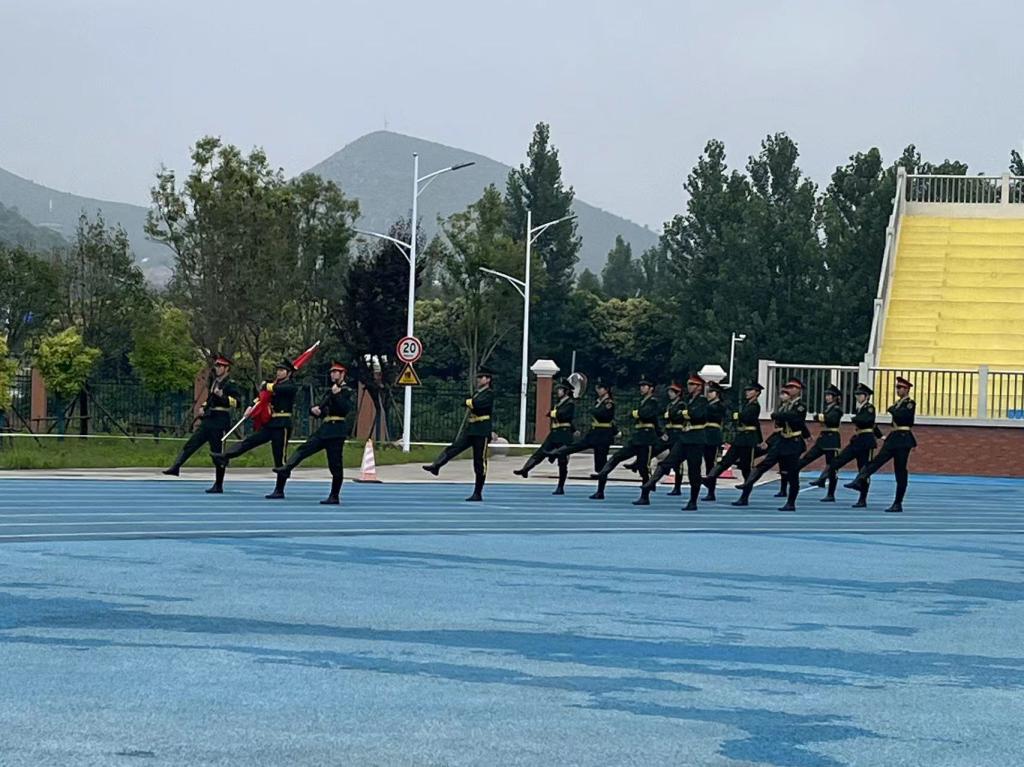 随后,庄严的升旗仪式在师生们的瞩目中开始。国旗护卫队迈着整齐的步伐,精神抖擞地走向国旗台,伴随着慷慨激昂的乐曲,五星红旗在全体师生的注目下冉冉升起,迎风飘扬。