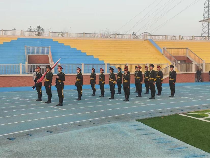 升旗仪式正式开始。国旗护卫队迈着矫健、铿锵有力的步伐,护卫着五星红旗,走向升旗台。全体师生面向国旗行注目礼,升国旗,奏国歌,向伟大的祖国致以深情的祝福。