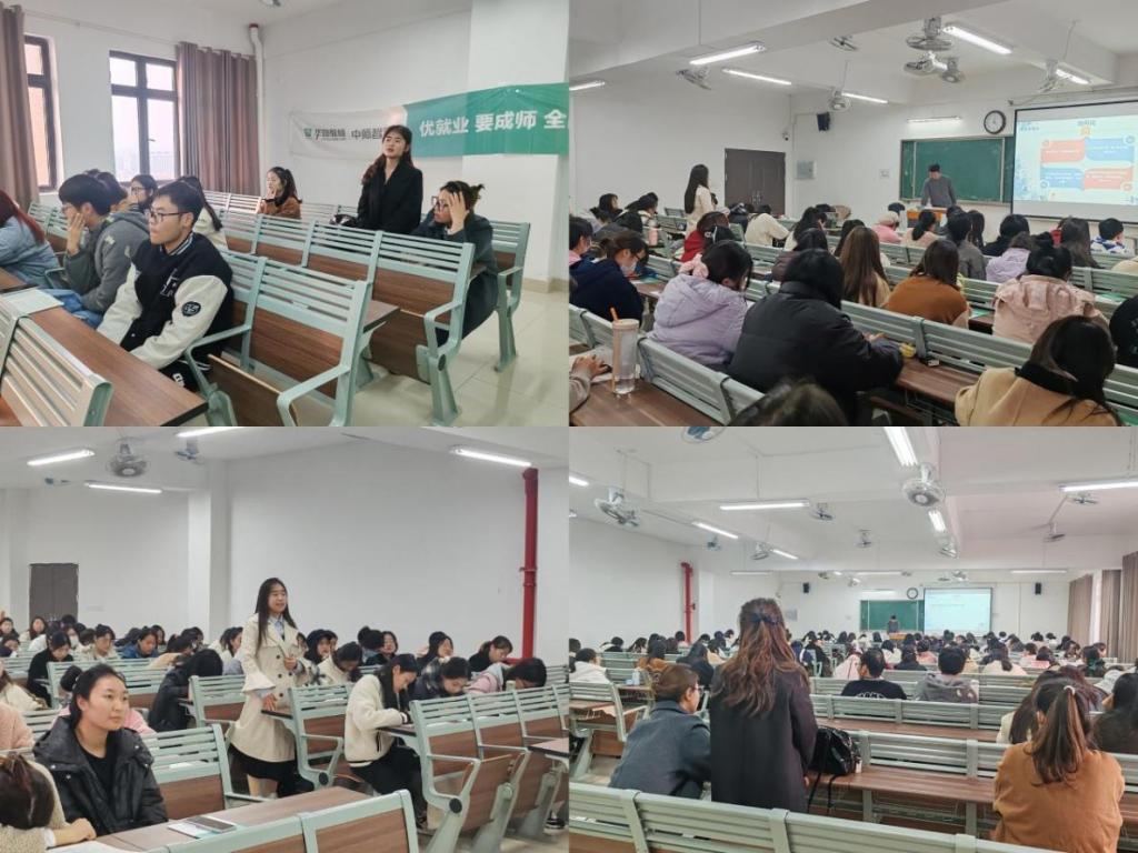 就业宣讲中,中公教育的老师向同学们介绍公司的发展和人员招聘情况,希望有志于教育培训的毕业生积极向他们投递简历。宣讲老师还向同学们介绍了获取就业信息的一般途径。在如今竞争日益激烈的就业市场上,掌握有效的就业信息获取渠道能大幅降低就业的难度,让同学们赢在起跑线上。接着又讲述了考公考编的方法与方向,还增加了问答互动环节,使同学们对考公考编有了更深刻的认识,对自己的未来有了更明确的规划。