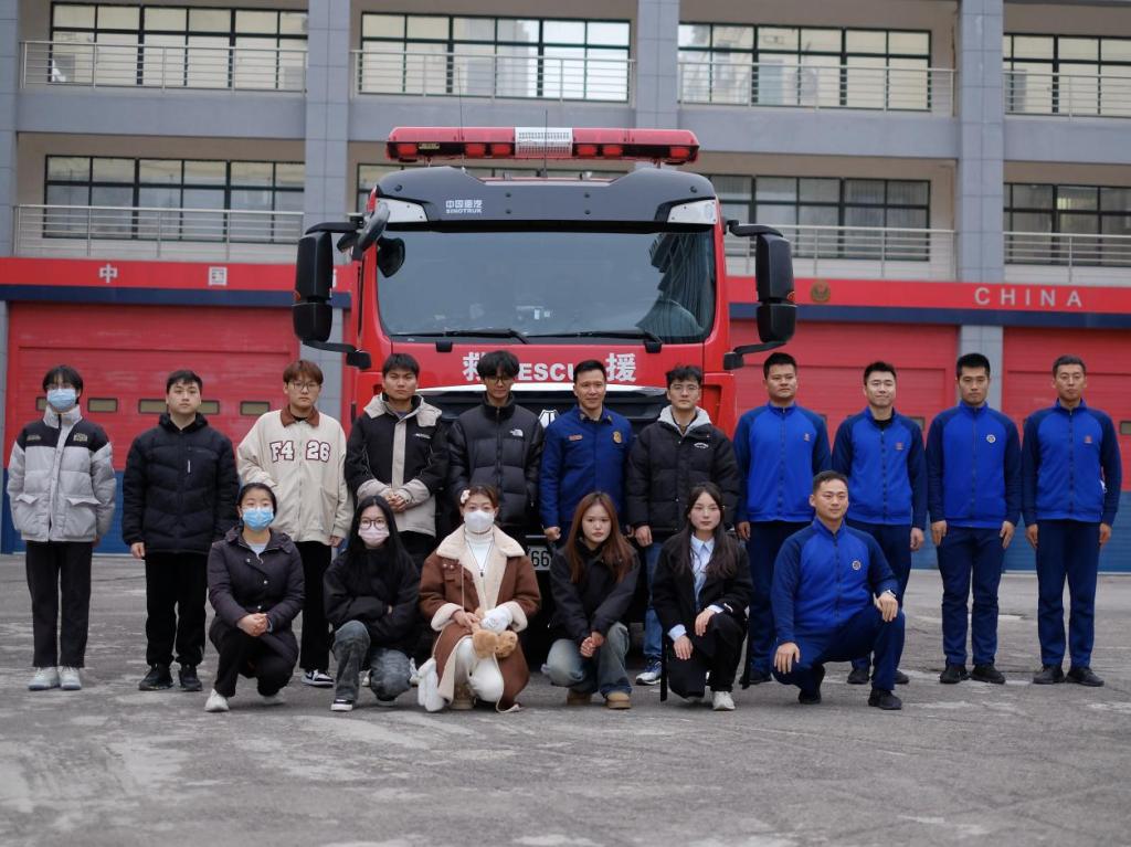 最后,全体师生与消防救助人员进行合影留念。临别之际,消防员们再三嘱咐同学们要小心使用电器,谨防火灾。