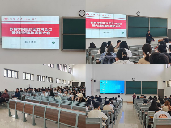 为进一步提高班长团支书业务能力,培养学生干部综合素质,强化学生干部队伍建设,促进学院学生管理工作更好开展。教育学院于4月18日中午在1号教学楼121教室召开班长、团支书会议暨先进班集体表彰大会。本次会议由学院团总支副书记许海涛主持,学院分管副书记孟向红、书记助理黄莹莹、辅导员以及非毕业班班长、团支书参加了会议。