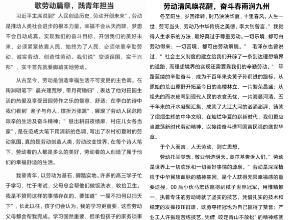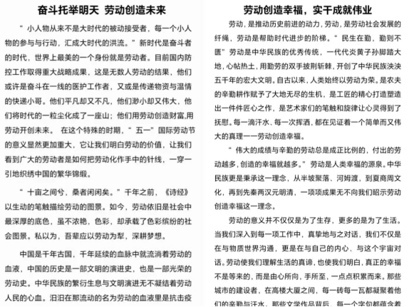 5月6日至13日,教育学院圆满举办“劳动创造幸福生活”征文比赛活动。同学们踊跃报名,佳作频出,用文字承载劳动的正向意义,体现了劳动最美丽、奋斗正青春的中心思想。