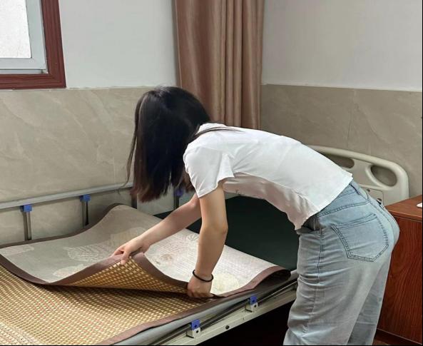 关爱服务团成员于7月15日上午来到亳州市利辛县温馨老年公寓,敬老院负责人在了解了服务团的来意后,向大家介绍了老年公寓的情况。随后,大家分组到指定房间,陪老人们拉家常、传授养生小知识,给老人们带来欢乐。在与老人们增进感情的同时,还帮助老人们整理内务,打扫卫生,为老人们提供更舒适的生活环境和精神上的陪伴与慰藉,用行动诠释了尊老敬老的传统美德。