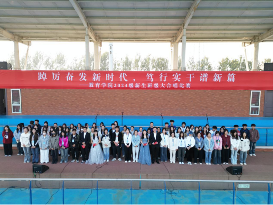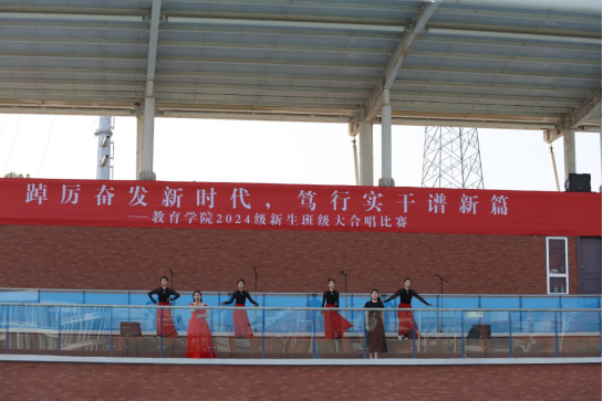 为进一步丰富同学们的校园文化生活,增强班级集体荣誉感,展现青年学生朝气蓬勃、团结一致、开拓进取的精神风貌,教育学院在2024级新生班级中举办了“踔厉奋发新时代,笃行实干谱新篇”第四届新生班级大合唱比赛,34个新生班级1200多名同学组成17支参赛队伍参加了比赛,非新生班级的辅导员老师担任评委。学院领导、辅导员老师及全体2024级新生观摩了比赛。