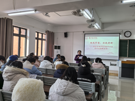 考研的号角已经吹响,对于即将踏上考场的学子们来说,这是一段既充满希望又充满挑战的时光。为缓解考研生的备考压力,传递温暖与力量,12月18日下午,教育学院在2教522教室成功举办“超越梦想,决战考研”——2025届毕业生考研送温暖活动。学院党总支副书记孟向红、书记助理黄莹莹、毕业班辅导员以及2025届毕业班考研学生代表参加了本次活动。