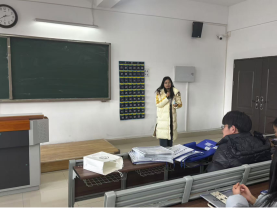 活动现场,毕业班辅导员老师们为考研学子们一一分发了精心为他们准备的“考试文具包”和用心制作表达老师们对考研同学深情祝福的精美“书签”。同学们被这些承载着祝福与激励的小小的礼物感动了,大家虽然学习疲惫,此刻脸上却洋溢着幸福的微笑。