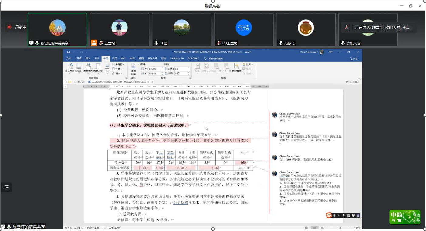 李俚副院长对陈教授的帮助和分享表示了深深的感谢,并强调能动专业要认真学习陈教授的反馈和建议,结合学校定位,尽快对标OBE专业认证评价标准对能源与动力工程专业2022版人才培养方案进一步优化和专业认证工作的推进,争取早日通过专业认证。