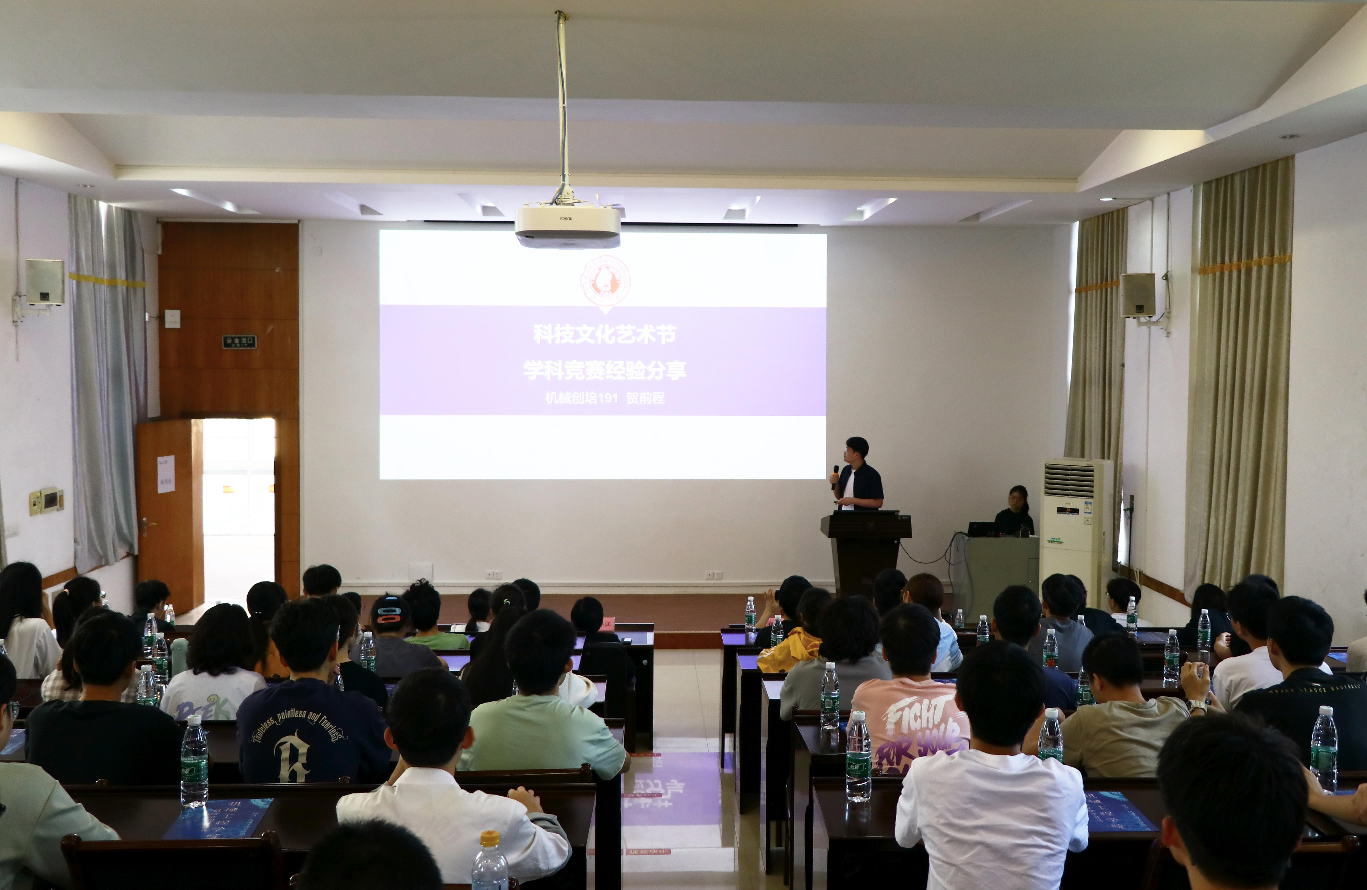 随后,还进行了科技文化艺术节的第一个子活动——“青春引路人”经验分享会,2020级硕士研究生卓能聪为大家分享学科竞赛经验,从撰写商业计划书、制作竞赛PPT、跨学科交流合作等方面深入浅出地介绍学科竞赛的各个方面。2019级本科生贺前程向同学们介绍本科期间参加的各类学科竞赛,并表示要在竞赛中取得好成绩,一是要“学好当下的专业课,打下良好专业基础”;二是“要积极参加科研活动、竞赛,在活动中学会与同学互相合作,彼此成就。”