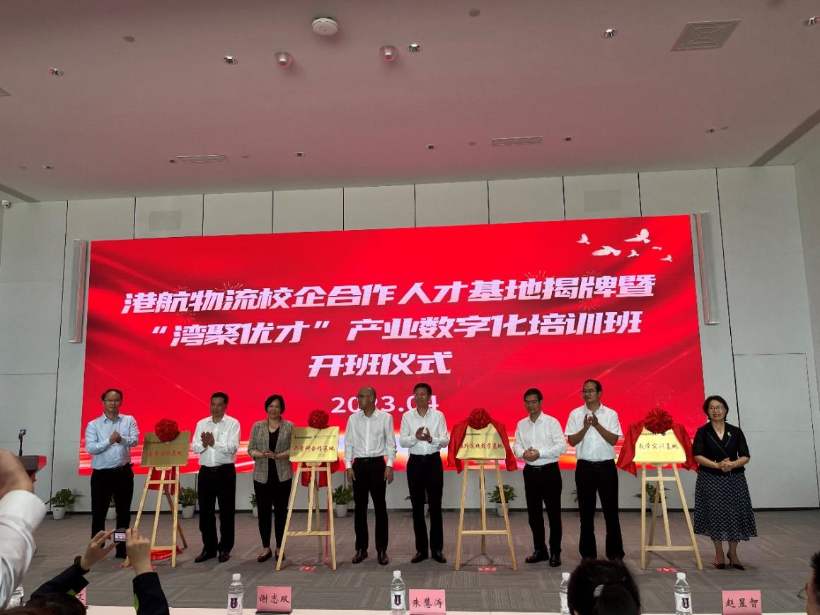 为推进实施北部湾重大人才项目“北部湾国际门户港、国际枢纽海港重点人才集聚工程”以及推动北部湾经济区产业数字化人才培养工作,4月18日,自治区北部湾经济区规划建设管理办公室举办的“港航物流校企合作人才基地”揭牌暨“湾聚优才”产业数字化培训班开班仪式在广西钦州保税港区盛港码头有限公司(自动化集装箱码头)举行。自治区北部湾经济区规划建设管理办公室副主任王宗文、钦州市委常委兼组织部部长黄剑峰、北部湾大学党委副书记陈锦山、广西交通职业技术学院校长李文勇等领导出席,会议由北部湾港集团党委副书记谢志双主持。学院党委书记卢婵江、副院长李俚受邀参加“港航物流校企合作人才工作座谈会”,并为“智慧港航”产学研产学研合作基地揭牌。