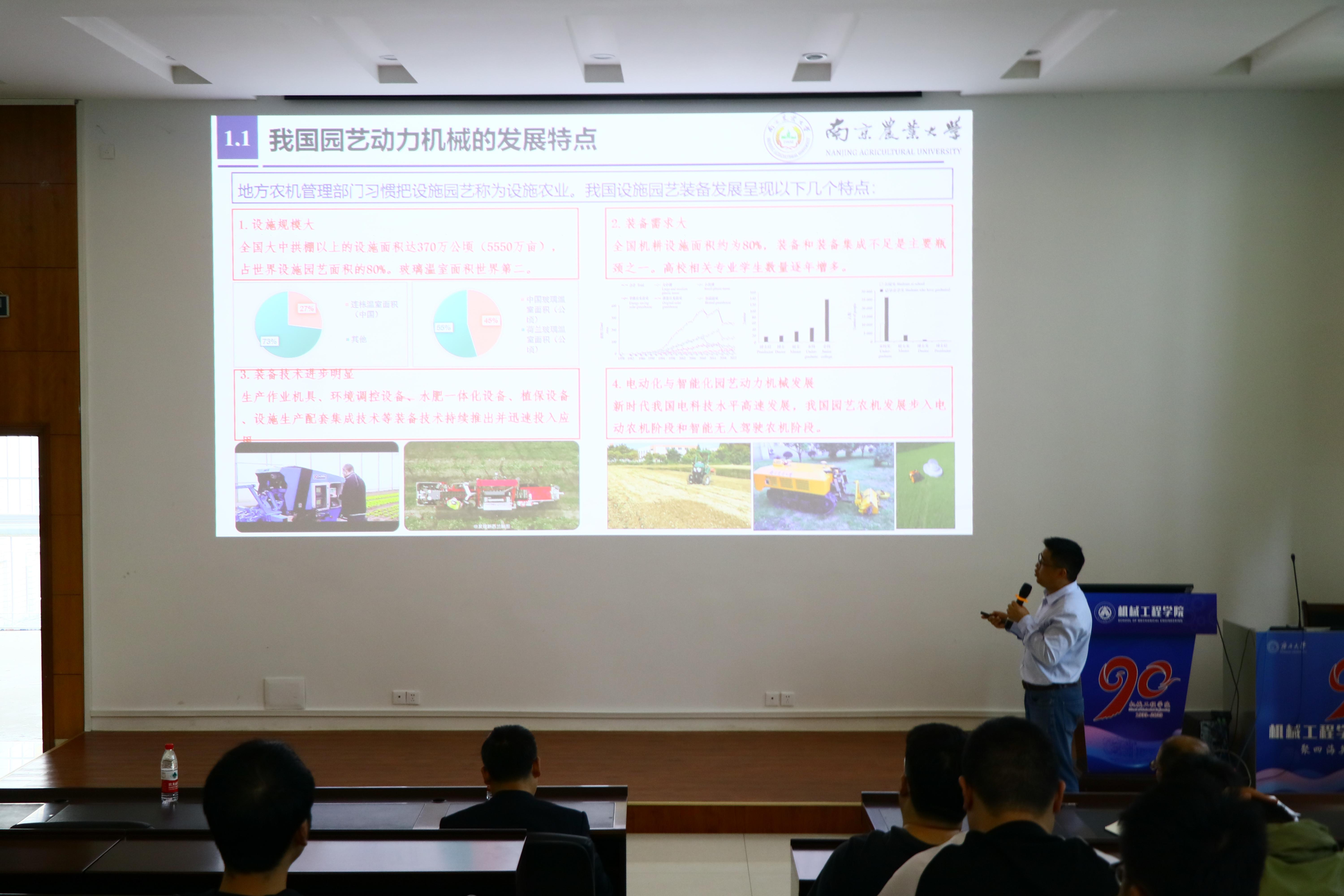 11月24日,南京农业大学工学院教授、博士生导师肖茂华和南京林业大学机电学院林机系主任陈青副教授受邀到访我院,肖教授为学院师生做了以“电动智能园艺动力机械发展关键技术”为题的学术报告。副院长贺德强主持报告会。