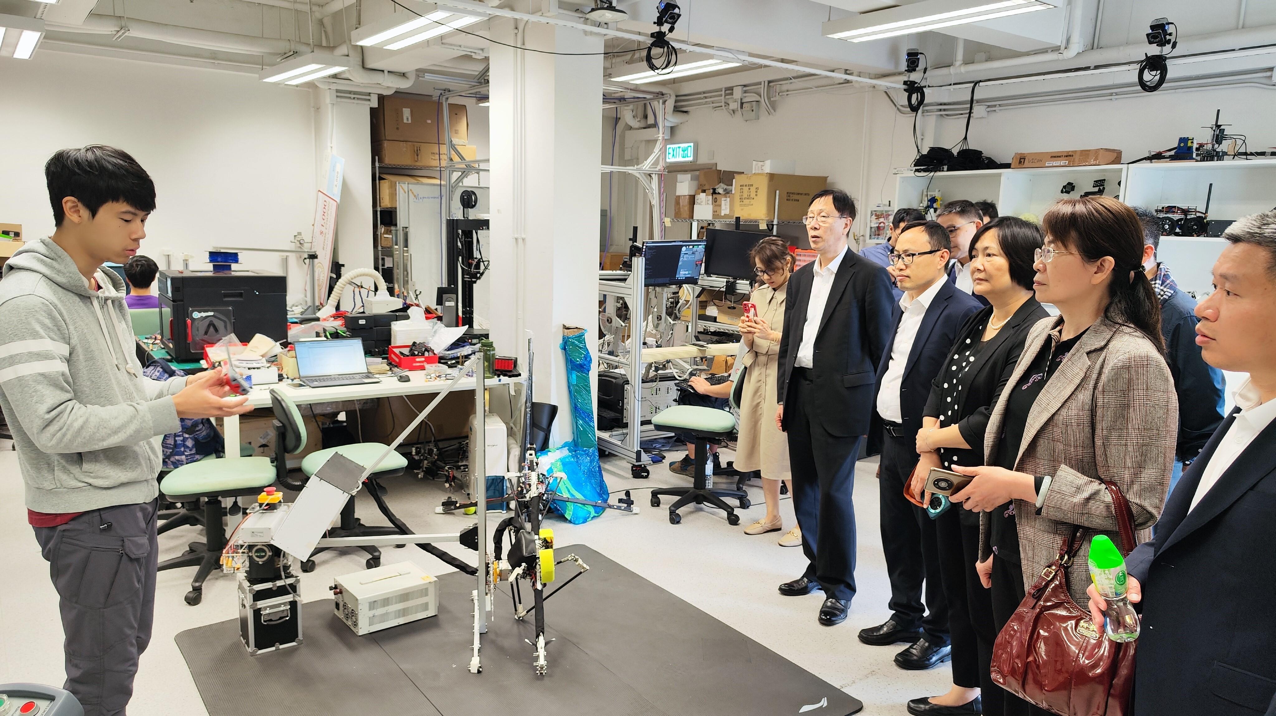 29日上午,考察团抵达此行最后一站香港中文大学。香港中文大学机械及自动化系主任廖维新教授等代表接待了考察团。廖教授向考察团介绍了香港中文大学在科学研究、成果转化、人才培养、学科竞赛等方面的成绩和特色,广西大学考察团介绍了机械工程学院建院90周年以来的成绩。随后在宋旭、韩东昆两位教授的带领下,考察团参观了香港中文大学T-stone机器人研究所和智能设计与制造研究所,了解香港中文大学在3D打印、翻转多自由度机器人、线控机器人等领域所开展的研发情况。