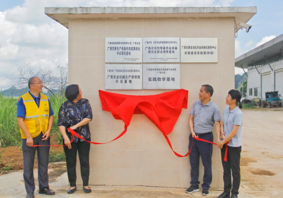 6月23日上午,广西大学与广西壮族自治区农业机械化服务中心(以下简称“自治区农机中心”)在广西亚热带农科新城广西甘蔗生产机械化试验示范园区举办“广西农业机械化产学研推示范基地”等合作平台揭牌仪式。自治区农机中心党委副书记范军灿、广西农业机械研究院有限公司总工程师庞承妮、广西大学农牧产业发展研究院院长司红彬、广西大学机械工程学院党委书记卢婵江共同揭牌。共建单位代表、智能农机研究团队专家、智能农机研究生代表等10多人现场共同见证。同时揭牌的还有“广西甘蔗生产装备科技成果转化中试基地”、“广西示范性智能农业装备研究生联合培养基地”、“广西亚热带智能农机装备产业学院实践教学基地”等三个平台。