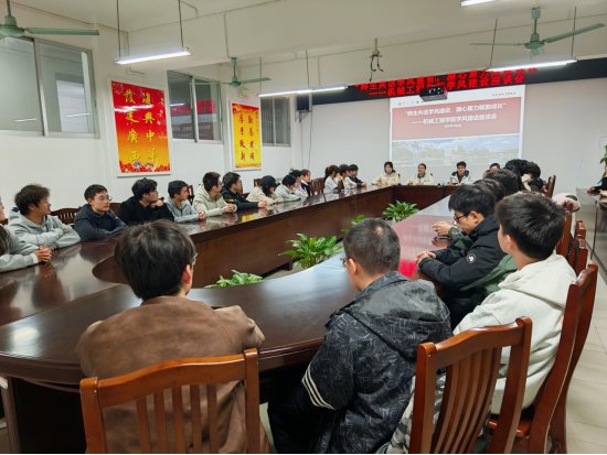 为进一步加强学院学风建设,提升学业朋辈帮扶质量,2026年1月4日,院学工组在第一会议室组织召开2026年学风建设暨学业朋辈帮扶交流座谈会,院党委副书记黄路明、院团委书记李华、辅导员农婷婷、初虹辰以及本学期各朋辈帮扶对子代表参加座谈交流。
