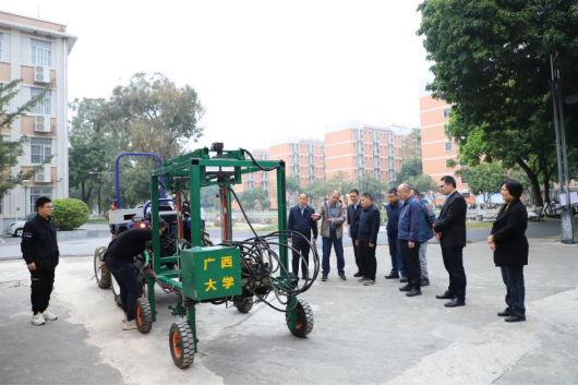 蒋兴明副厅长一行先后参观中国-东盟智能制造技术创新中心、甘蔗生产机械化技术研发实验室、甘蔗连煮智能控制实验室、智慧农业大数据管理平台等,实地考察我院围绕甘蔗产业链机械化所开展的系列科研条件与成果积累。