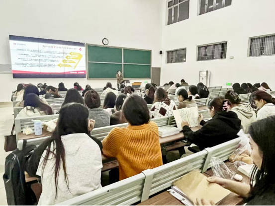 在选岗指导环节,郑凌双老师倾囊相授。她不仅全面介绍了各类岗位的特点、职责和发展前景,还结合同学们的专业背景、兴趣爱好以及个人优势,提供了极具针对性的选岗建议。为了让同学们更直观地理解,她还列举了许多成功选岗的案例进行分析,使同学们深刻认识到合理选岗对于未来职业发展的重要性。最后,郑凌双老师为同学们详细介绍了公务员考试的日程安排和面试流程,为同学们积极备考打下基础。