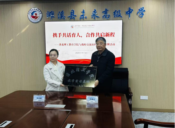 座谈交流结束后,双方举行了简洁而隆重的签约与授牌仪式。王家云院长与濉溪县未来高中龙永娟校长共同签署了教学实习基地协议,孟向红副院长则签署了实习实训就业基地协议,并现场完成挂牌。