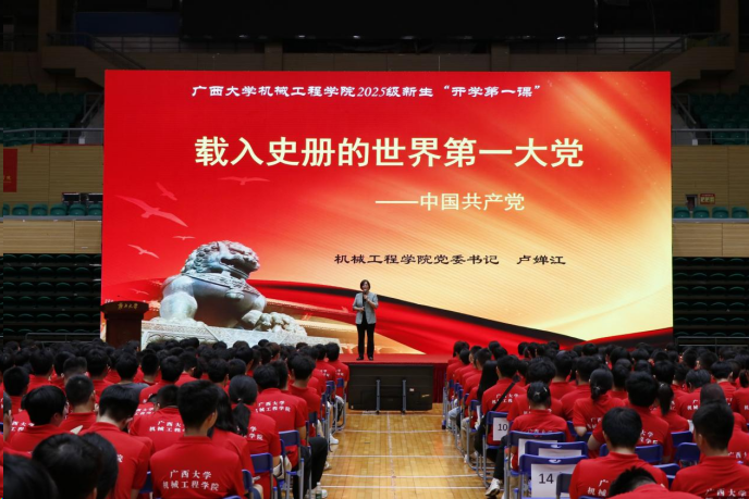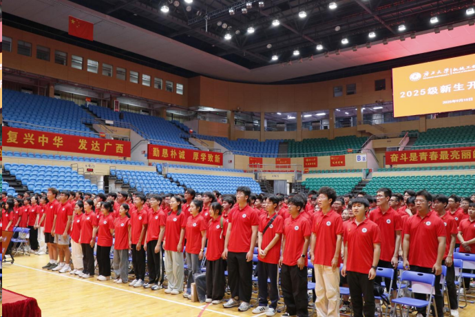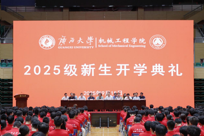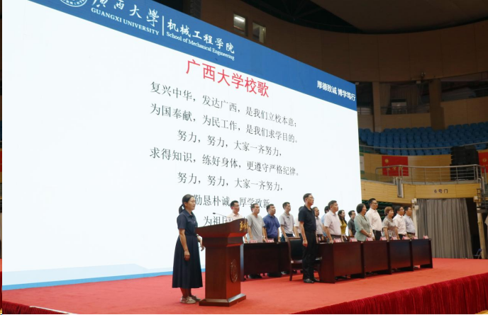 “勤恳朴诚,厚学致新,为祖国奋斗到底!”当激昂的旋律响起,师生们齐声高唱《广西大学校歌》,典礼在这振奋人心的歌声中缓缓落下帷幕。2025级新生也将在广西大学机械工程学院这片充满希望的土地上茁壮成长,为实现个人价值和国家梦想贡献青春力量。
