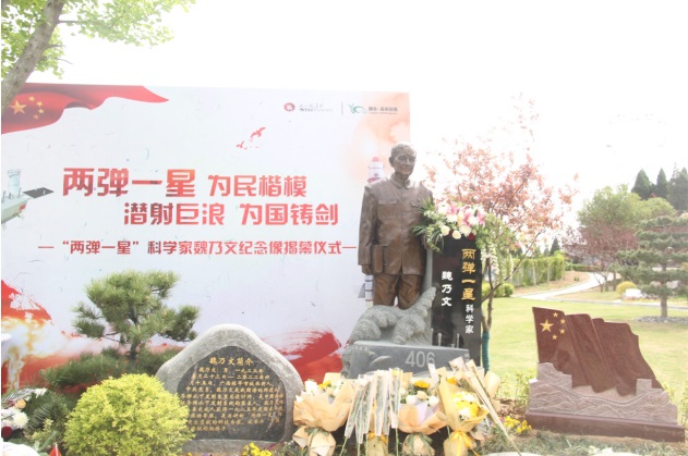 清风拂松柏,忠魂永流传。4月15日上午,两弹一星为民楷模,潜射巨浪为国铸剑——“两弹一星”科学家魏乃文先生纪念像揭幕仪式在郑州市二七区御泉园揭幕。魏乃文先生生前就读的广西大学的领导代表、出生地广西桂平市政府的领导代表、贵港日报记者代表、广西大学校友会代表以及魏乃文先生的家属共同参加了揭幕仪式。