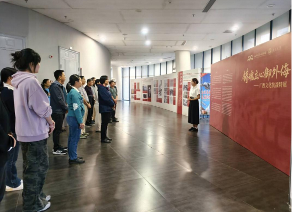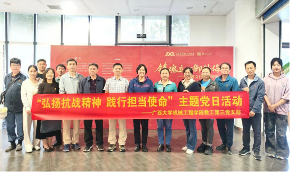 今年是中国人民抗日战争暨世界反法西斯战争胜利八十周年。2025年10月30日,院党委书记卢婵江率我院教工第三党支部开展“弘扬抗战精神,践行担当使命”主题党日活动,赴大学生活动中心参观“铸魂立心御外海”广西文化抗战特展以及“拳拳匠心,拱桥人生”郑皆连院士科创成就展。